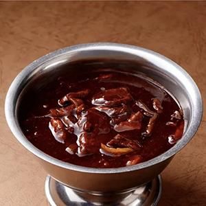 ビーフは創業以来大切に守り続ける専用の煮汁で、じっくり丁寧に煮込み、とろけるほどの柔らかさに仕上げています。
